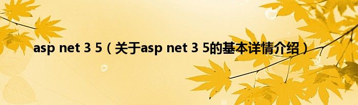本文关于asp net 3 5的基本详情介绍就讲解完毕,希望对大家有所帮助。