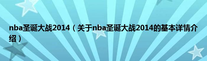 本文关于nba圣诞大战2014的基本详情介绍就讲解完毕,希望对大家有所帮助。