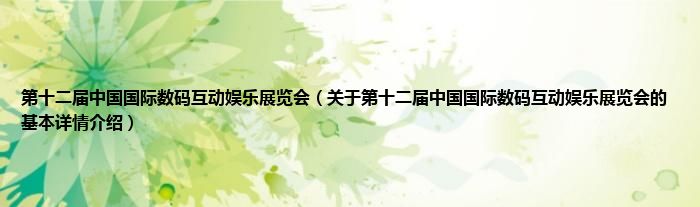 本文关于第十二届中国国际数码互动娱乐展览会的基本详情介绍就讲解完毕,希望对大家有所帮助。