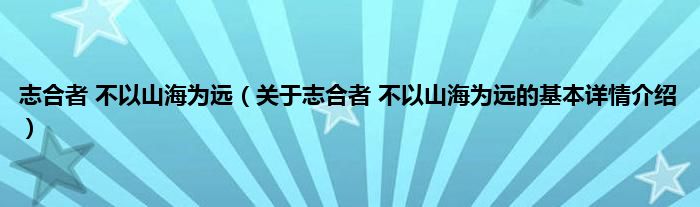 本文关于志合者 不以山海为远的基本详情介绍就讲解完毕,希望对大家有所帮助。