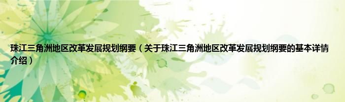 本文关于珠江三角洲地区改革发展规划纲要的基本详情介绍就讲解完毕,希望对大家有所帮助。