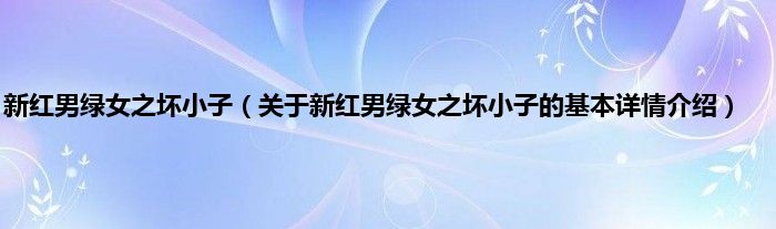 本文关于新红男绿女之坏小子的基本详情介绍就讲解完毕,希望对大家有所帮助。