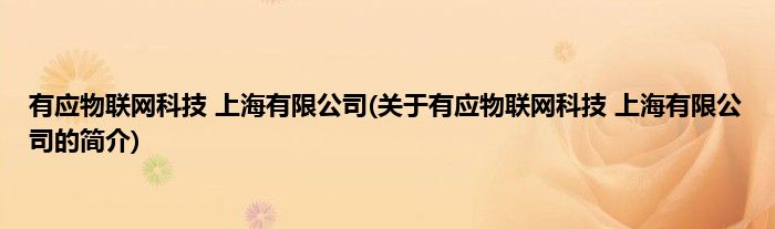 大家好,有应物联网科技 上海有限公司,关于有应物联网科技 上海有限公司的简介很多人还不知道,现在让我们一起来看看吧!