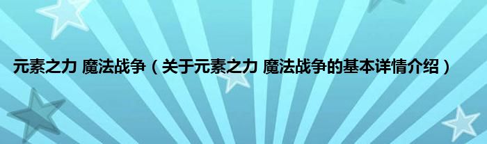 元素之力 魔法战争(关于元素之力 魔法战争的基本详情介绍)