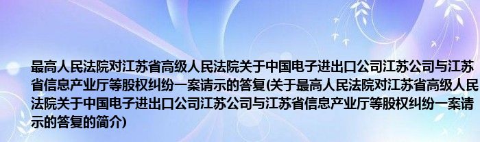 本文关于最高人民法院对江苏省高级人民法院关于中国电子进出口公司江苏公司与江苏省信息产业厅等股权纠纷一案请示的答复的简介就讲解完毕,希望对大家有所帮助。