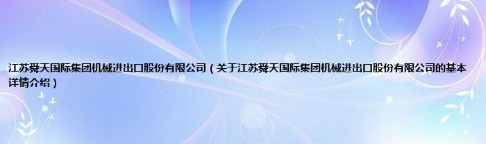 本文关于江苏舜天国际集团机械进出口股份有限公司的基本详情介绍就讲解完毕,希望对大家有所帮助。