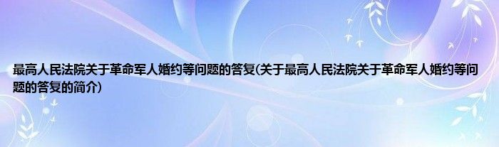 大家好,最高人民法院关于革命军人婚约等问题的答复,关于最高人民法院关于革命军人婚约等问题的答复的简介很多人还不知道,现在让我们一起来看看吧!
