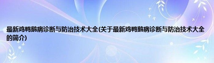 本文关于最新鸡鸭鹅病诊断与防治技术大全的简介就讲解完毕,希望对大家有所帮助。