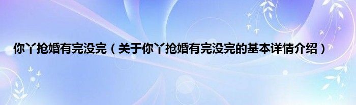 大家好我是小蝌蚪,你丫抢婚有完没完,关于你丫抢婚有完没完的基本详情介绍很多人还不知道,那么现在让我们一起来看看吧!