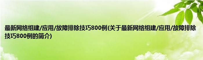 大家好,最新网络组建/应用/故障排除技巧800例,关于最新网络组建/应用/故障排除技巧800例的简介很多人还不知道,现在让我们一起来看看吧!