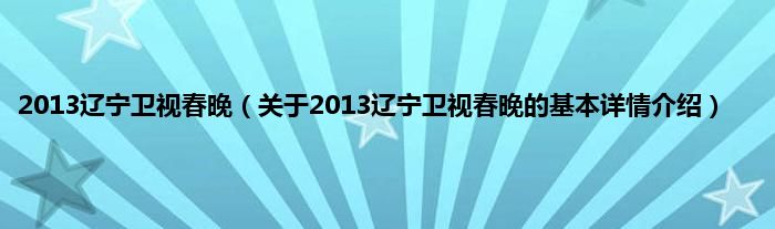本文关于2013辽宁卫视春晚的基本详情介绍就讲解完毕,希望对大家有所帮助。
