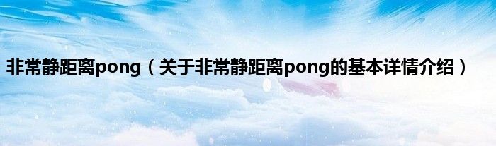 本文关于非常静距离pong的基本详情介绍就讲解完毕,希望对大家有所帮助。