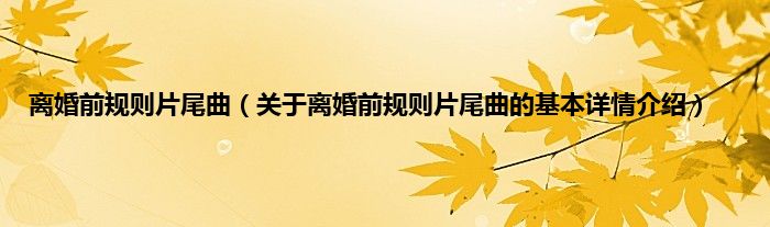 本文关于离婚前规则片尾曲的基本详情介绍就讲解完毕,希望对大家有所帮助。