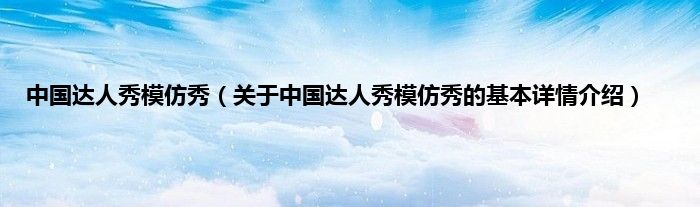 本文关于中国达人秀模仿秀的基本详情介绍就讲解完毕,希望对大家有所帮助。