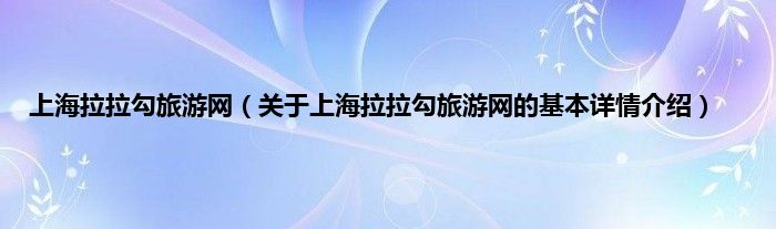本文关于上海拉拉勾旅游网的基本详情介绍就讲解完毕,希望对大家有所帮助。