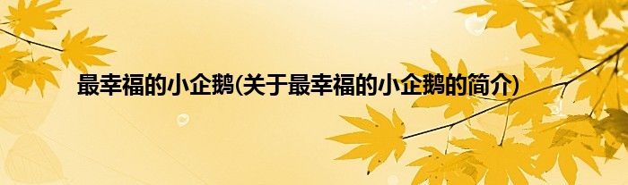 大家好,最幸福的小企鹅,关于最幸福的小企鹅的简介很多人还不知道,现在让我们一起来看看吧!