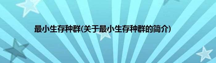 大家好,最小生存种群,关于最小生存种群的简介很多人还不知道,现在让我们一起来看看吧!