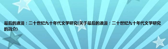 本文关于最后的浪漫:二十世纪九十年代文学研究的简介就讲解完毕,希望对大家有所帮助。