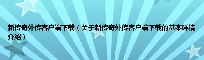 本文关于新传奇外传客户端下载的基本详情介绍就讲解完毕,希望对大家有所帮助。