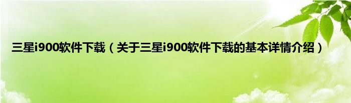 本文关于三星i900软件下载的基本详情介绍就讲解完毕,希望对大家有所帮助。