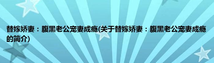 大家好,替嫁娇妻:腹黑老公宠妻成瘾,关于替嫁娇妻:腹黑老公宠妻成瘾的简介很多人还不知道,现在让我们一起来看看吧!