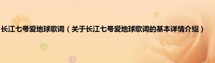 本文关于长江七号爱地球歌词的基本详情介绍就讲解完毕,希望对大家有所帮助。