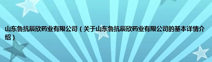 本文关于山东鲁抗辰欣药业有限公司的基本详情介绍就讲解完毕,希望对大家有所帮助。