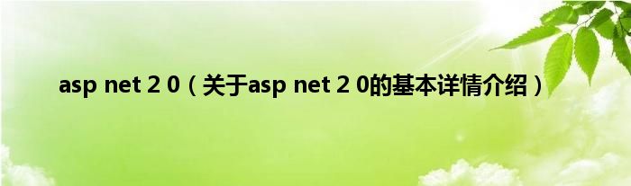 本文关于asp net 2 0的基本详情介绍就讲解完毕,希望对大家有所帮助。