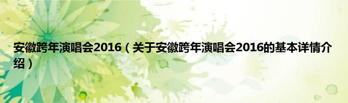 本文关于安徽跨年演唱会2016的基本详情介绍就讲解完毕,希望对大家有所帮助。
