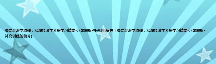 本文关于曼昆经济学原理:宏观经济学分册学习精要·习题解析·补充训练的简介就讲解完毕,希望对大家有所帮助。