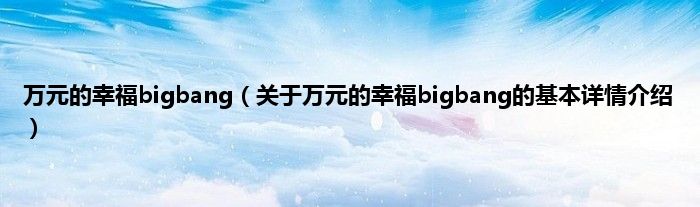 本文关于万元的幸福bigbang的基本详情介绍就讲解完毕,希望对大家有所帮助。
