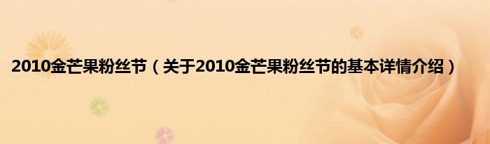 本文关于2010金芒果粉丝节的基本详情介绍就讲解完毕,希望对大家有所帮助。