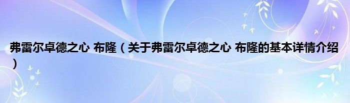 本文关于弗雷尔卓德之心 布隆的基本详情介绍就讲解完毕,希望对大家有所帮助。