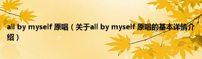 本文关于all by myself 原唱的基本详情介绍就讲解完毕,希望对大家有所帮助。