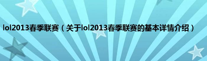 本文关于lol2013春季联赛的基本详情介绍就讲解完毕,希望对大家有所帮助。