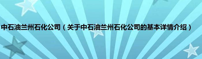 本文关于中石油兰州石化公司的基本详情介绍就讲解完毕,希望对大家有所帮助。