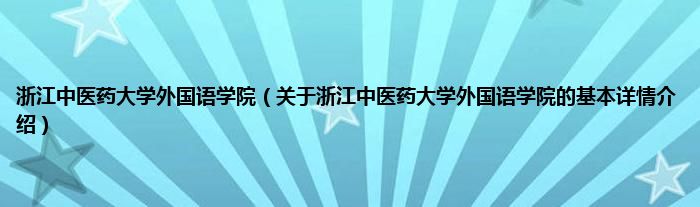 本文关于浙江中医药大学外国语学院的基本详情介绍就讲解完毕,希望对大家有所帮助。