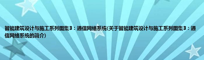 2、《智能建筑设计与施工系列图集3:通信 网络系统》通俗易懂,实用性强。