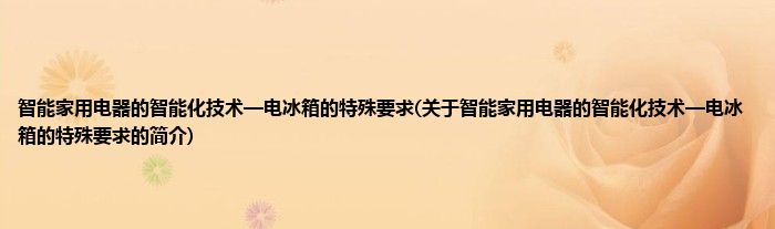 本文关于智能家用电器的智能化技术—电冰箱的特殊要求的简介就讲解完毕,希望对大家有所帮助。