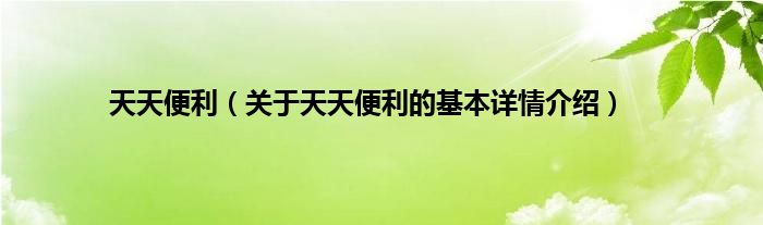 本文关于天天便利的基本详情介绍就讲解完毕,希望对大家有所帮助。