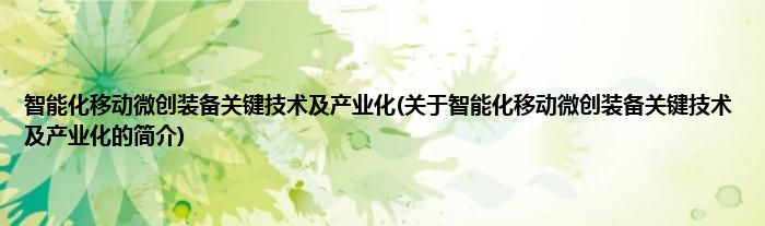 本文关于智能化移动微创装备关键技术及产业化的简介就讲解完毕,希望对大家有所帮助。