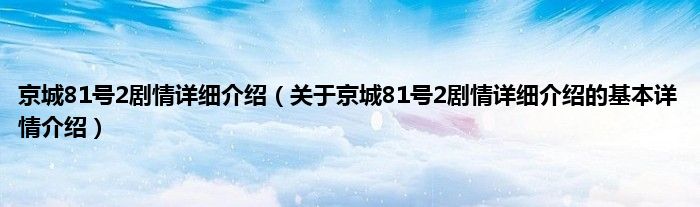 本文关于京城81号2剧情详细介绍的基本详情介绍就讲解完毕,希望对大家有所帮助。