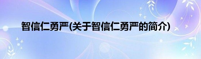 大家好,智信仁勇严,关于智信仁勇严的简介很多人还不知道,现在让我们一起来看看吧!