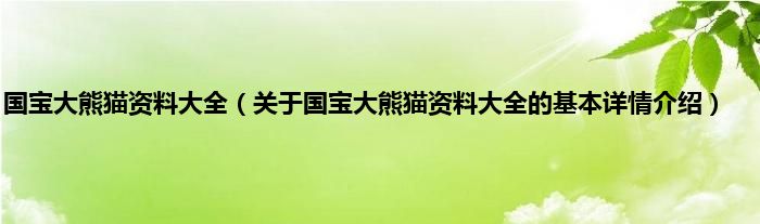 本文关于国宝大熊猫资料大全的基本详情介绍就讲解完毕,希望对大家有所帮助。
