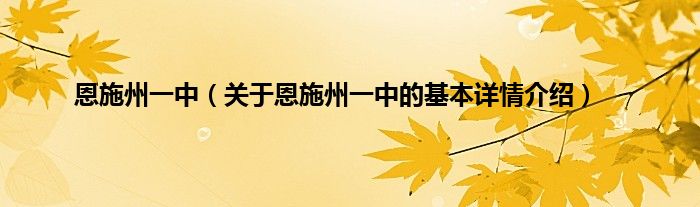 本文关于恩施州一中的基本详情介绍就讲解完毕,希望对大家有所帮助。