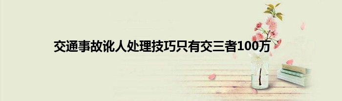 大家好,小问来为大家解答以上问题。交通事故讹人处理技巧只有交三者100万这个很多人还不知道,现在让我们一起来看看吧!