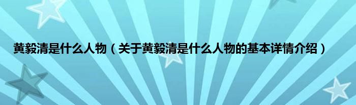 本文关于黄毅清是什么人物的基本详情介绍就讲解完毕,希望对大家有所帮助。