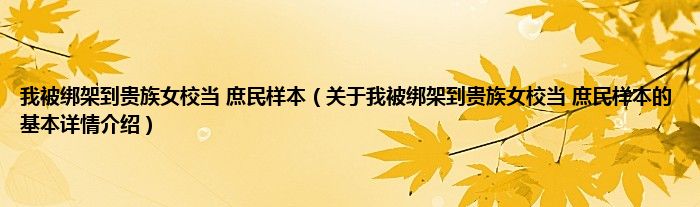 本文关于我被绑架到贵族女校当 庶民样本的基本详情介绍就讲解完毕,希望对大家有所帮助。
