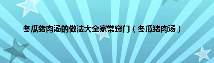 以上就是【冬瓜猪肉汤的做法大全家常窍门,冬瓜猪肉汤】相关内容。