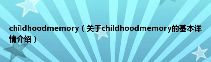 本文关于childhoodmemory的基本详情介绍就讲解完毕,希望对大家有所帮助。